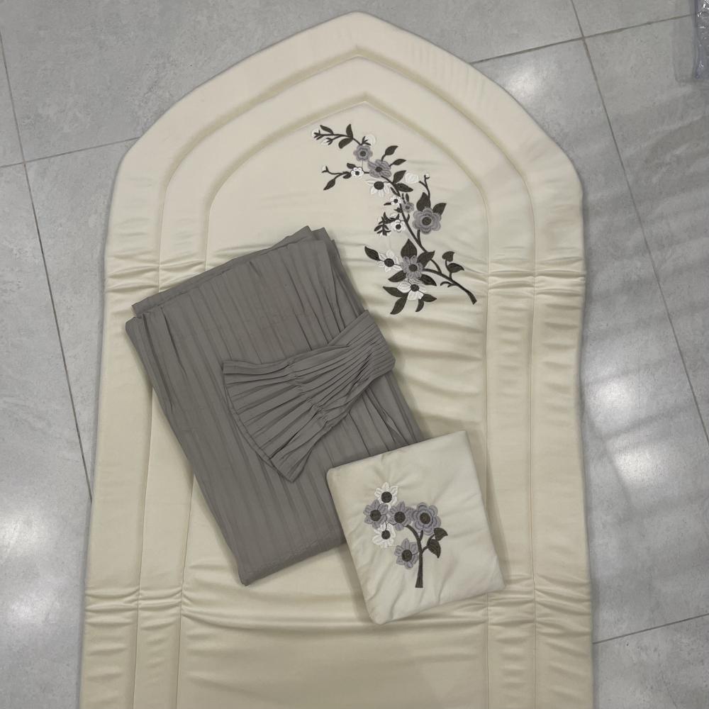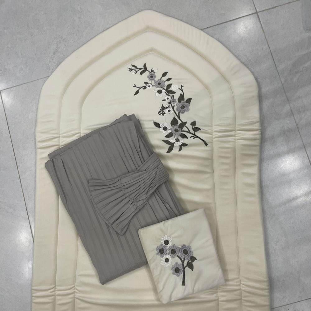 المنتج جودته جيدة لكن لكن تختلف جودة الاسفنج وجودة الخياطه في السجادة وشرشف الصلاة ولا يقارن بمنتجات رسالة وفرناها حتى يتماشى مع المنتجات المنتشرة في الاسواق لكثرة رغباء العملاء بهذا المنتج
